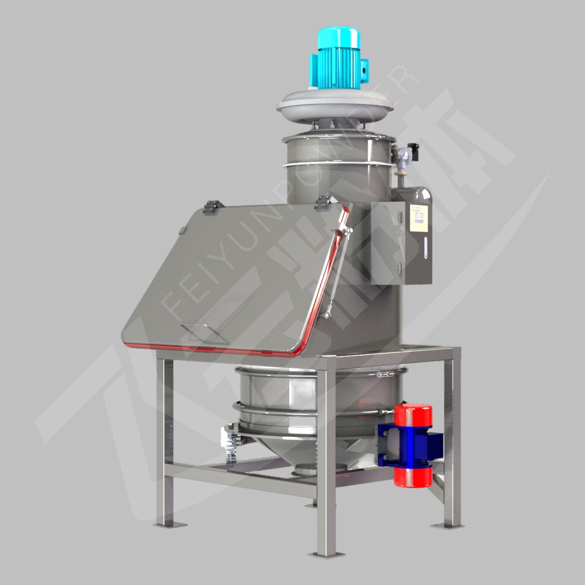 无尘投料站由投料平台、卸料仓、除尘系统、振动筛等部件组成。